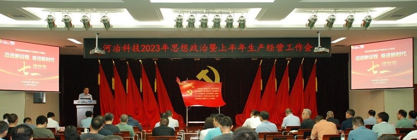 在建黨102周年之際,河冶科技2023年思想政治暨上半年生產經營工作會于7月7日在公司多功能廳召開。參加會議的有公司黨委委員、經理層、中層干部、黨支部書記、部門骨干、采購營銷人員、團委委員和子公司河冶住商黨總支委員及經理層人員等共計130余人。會議由公司黨委副書記、常務副總經理梁敬斌主持。